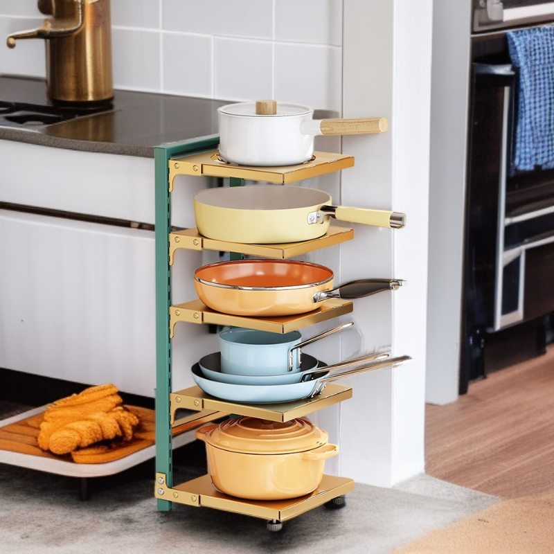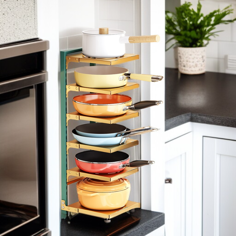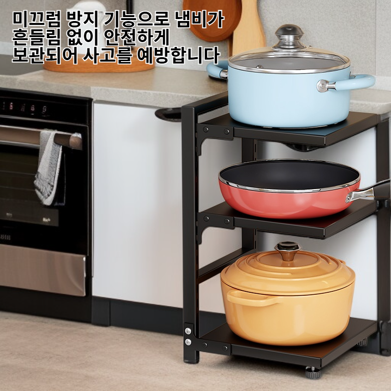 ● 다양한 크기의 냄비와 주방용품을 깔끔하게 정리할 수 있어 공간 활용도가 뛰어납니다. ● 견고한 소재로 제작되어 내구성이 우수하며, 오랜 시간 안전하게 사용할 수 있습니다. ● 설치가 간편하고 슬림한 디자인으로 주방 분위기를 해치지 않으면서 실용성을 높여줍니다. ● 미끄럼 방지 기능으로 냄비가 흔들림 없이 안전하게 보관되어 사고를 예방합니다. ● 오픈형 구조로 냄비를 쉽게 꺼내고 넣을 수 있어 요리할 때 편리함을 제공합니다.